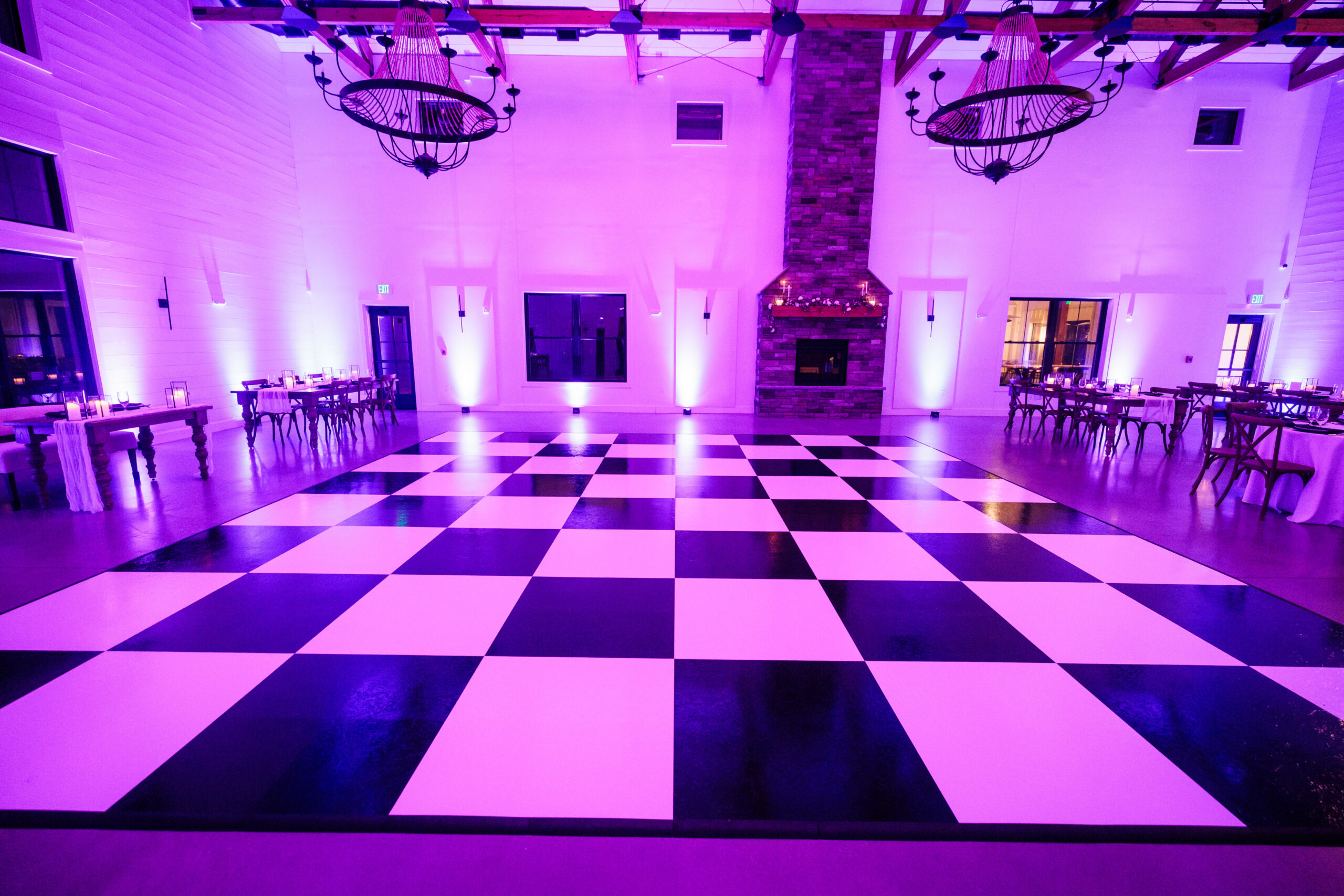 Whether you’re planning an elegant ballroom reception or a high-energy celebration, a black and white checkered dance floor delivers timeless style with modern impact. Our professional team handles delivery, precision leveling, and seamless integration with lighting, staging, and entertainment—ensuring your dance floor looks stunning from the first dance to the final song.